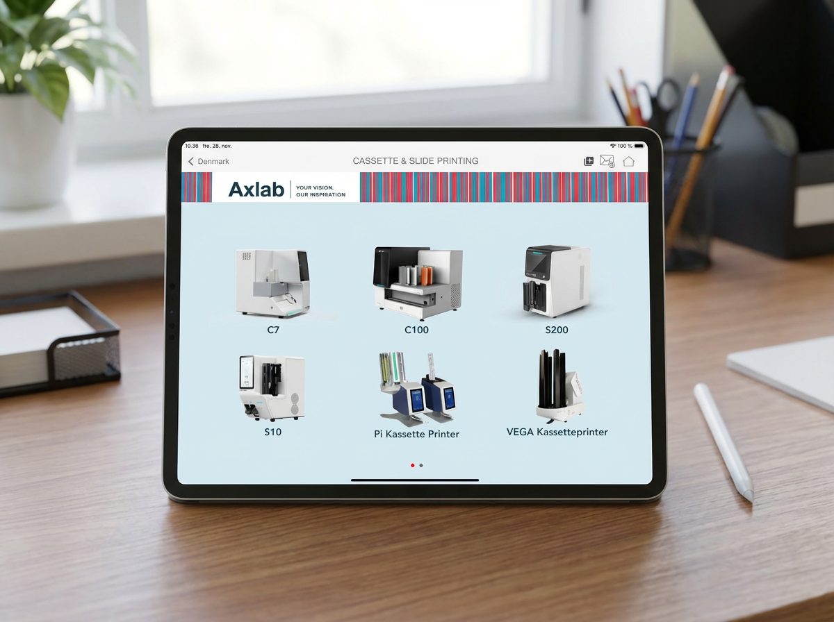 Axlab delivers advanced equipment, technology, and service to pathology departments and laboratories worldwide. With a portfolio of more than 50 products across five different markets, the team needed a smarter way to manage a growing library of presentations, videos, brochures, and technical documents — and make those materials easy for product specialists to use in everyday customer conversations.