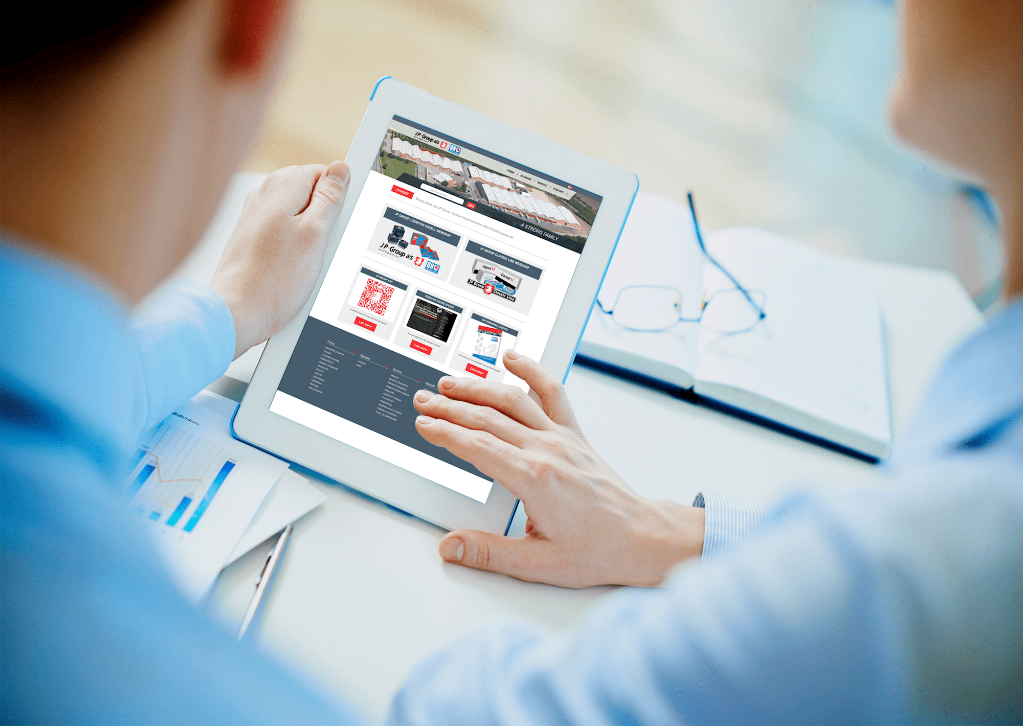 JP Group A/S needed a way to display their products digitally and increase customer interactions at trade fairs. The OmniShare app offers such functionality, for online and offline product presentations with integration to their Porsche Sound Studio.